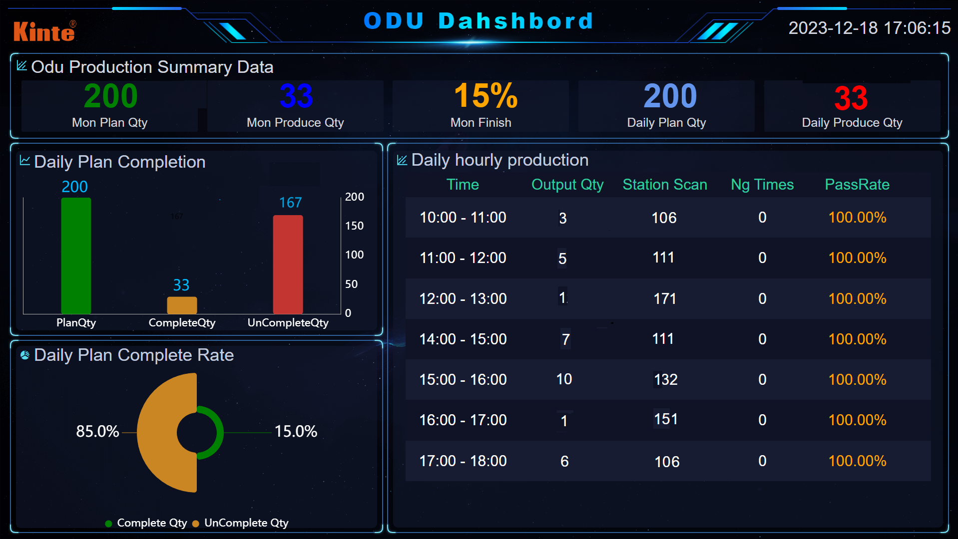 数据展示及分析模块通过系统实时采集的产量、良率等核心数据,将生产现场动态转化为可视化看板,提供生产小时产量、生产良率、制程推移、异常清单、生产看板等功能,能够直观地了解生产现场的实时状况并实时数据监控与可视化,优化资源配置、实现视触追溯、促进生产协同。