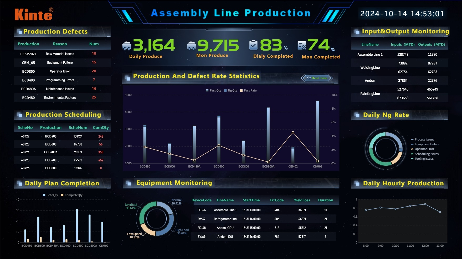 The data display and analysis module converts the real-time core data such as production volume, production yield, process traceability, abnormal list, and production dashboard, enabling a clear understanding of the real-time status of the production site. It offers real-time data monitoring and visualization, optimization of resource allocation, process traceability, and promotion of production collaboration.