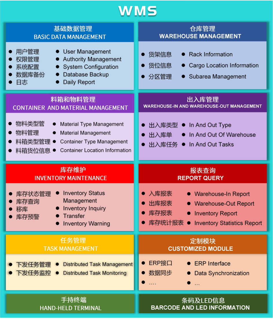系统融合了信息技术、无线射频技术、条码技术、电子标签技术、WEB技术、计算机应用技术等,是具有仓库管理、无线扫描、电子显示等完整功能的仓库管理系统。